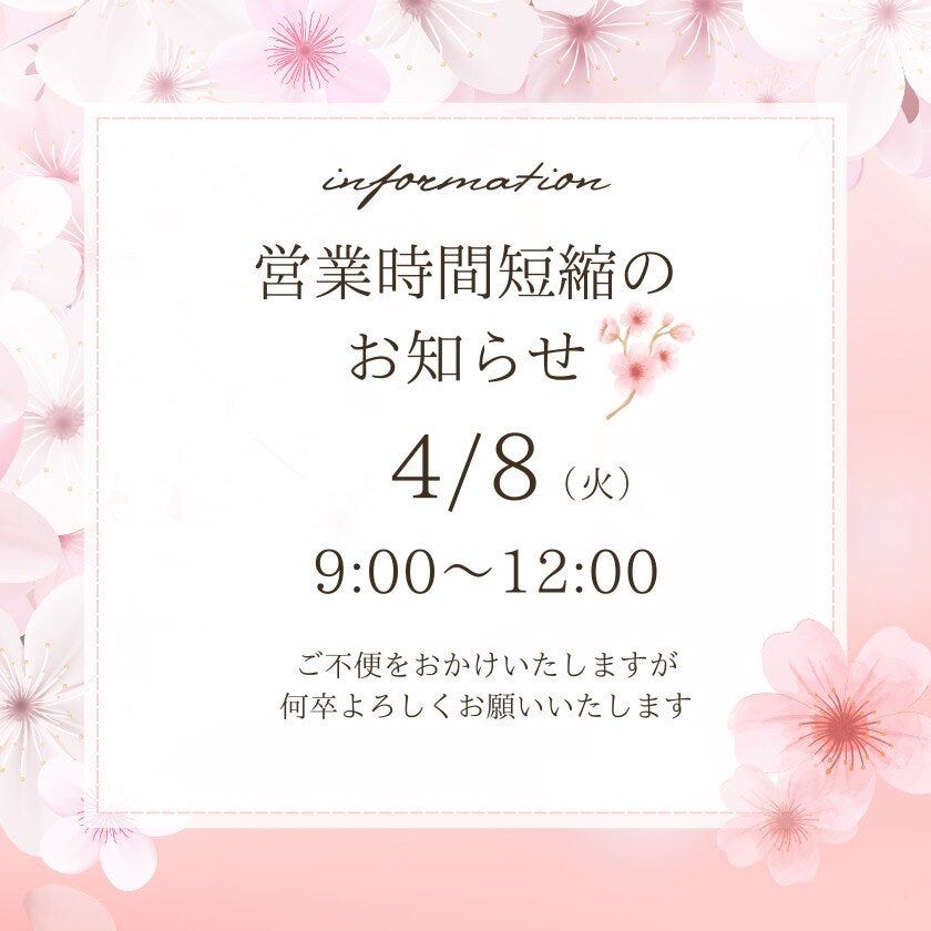4/9(水)9:00~から通常営業となりますので、宜しくお願い致します。